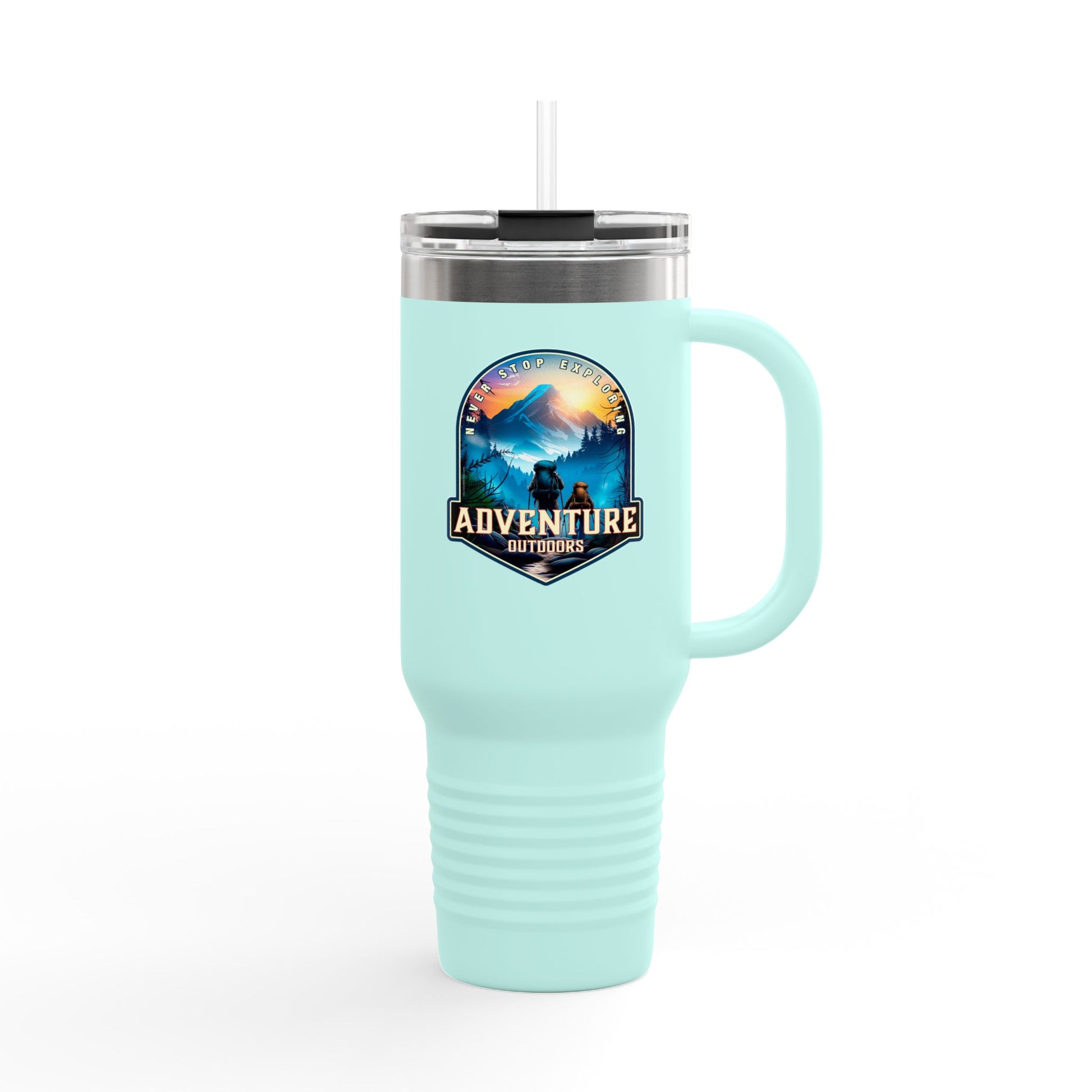 This insulated travel mug is designed for adventure, featuring a durable 100% stainless steel body and a straw with a lid for enhanced convenience on the go. With a generous 40oz (1.183l) capacity, it keeps your beverages at the perfect temperature thanks to its double-wall insulation. The powder-coated finish adds a sleek touch and is available in eight vibrant color variants so you can find that perfect match.